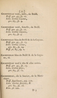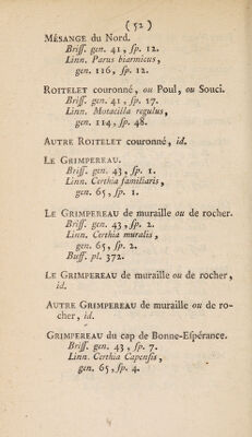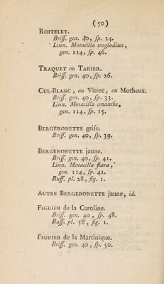 Catalogue des oiseaux de la collection de Monsieur le Baron de Faugeres, fait suivant le systême / de M. Brisson.