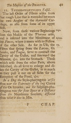 Myographiae comparatae specimen: or, a comparative description of all the muscles in a man and in a quadruped. Shewing their discoverer, origin, progress, insertion, use and difference. To which is added an account of the muscles peculiar to a woman. With an etymological table, and several useful indexes / By James Douglas.