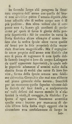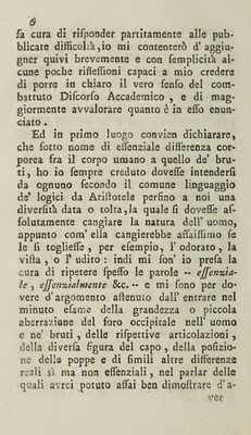 Delle corporee differenze essenziali che passano fra la struttura de'bruti, e la umana. Discorso accademico letto nel teatro anatomico della Regia Università di Pavia ... l'anno de'Cristiani 1770. E primo della restaurazione della Università / [Pietro Moscati].