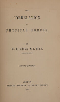 Credit: The correlation of physical forces / By W.R. Grove. Source: Wellcome Collection.
