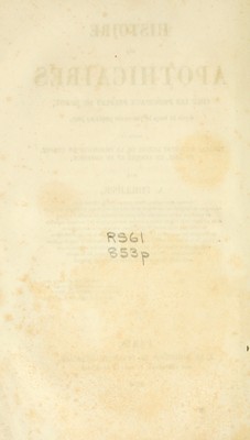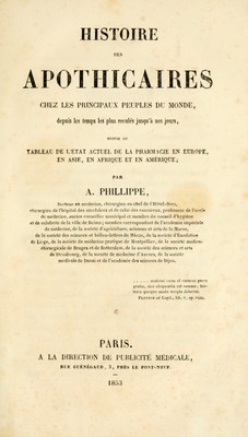 Histoire des apothicaires chez les principaux peuples du monde : depuis les temps les plus reculés jusqu'à nos jours, suivie du tableau de l'état actuel de la pharmacie en Europe, en Asie, en Afrique et en Amérique.