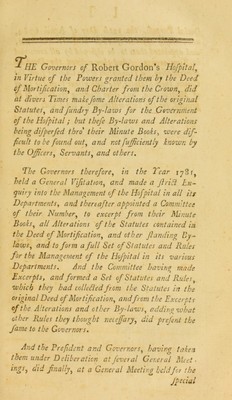 Foundation statutes and rules of Robert Gordon's Hospital in Aberdeen.