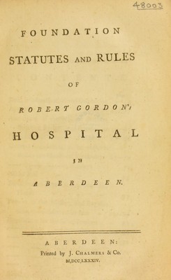Foundation statutes and rules of Robert Gordon's Hospital in Aberdeen.