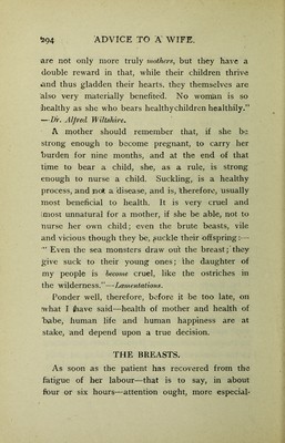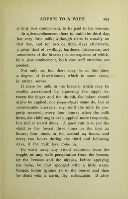 Chavasse's advice to a wife : on the management of her own health and on the treatment of some of the complaints incidental to pregnancy, labour, and suckling.