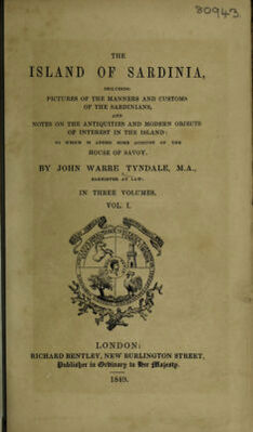 The Island of Sardinia / Including pictures of the manners and customs of the Sardinians, and notes on the antiquities and modern objects of interest in the island ; To which is added some account of the House of Savoy. By John Warre Tyndale.