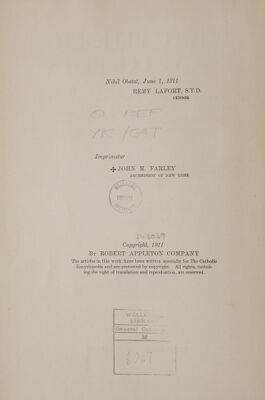 Credit: The Catholic encyclopedia : an international work of reference on the constitution, doctrine, discipline and history of the Catholic Church / edited by Charles G. Herbermann ... Edward A. Pace ... Condé B. Pallen ... Thomas J. Shahan, John J. Wynne; assisted by numerous collaborators. Source: Wellcome Collection.