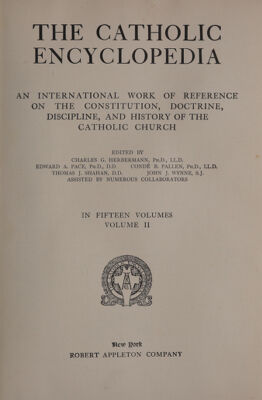 The Catholic encyclopedia : an international work of reference on the constitution, doctrine, discipline and history of the Catholic Church / edited by Charles G. Herbermann ... Edward A. Pace ... Condé B. Pallen ... Thomas J. Shahan, John J. Wynne; assisted by numerous collaborators.