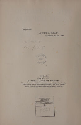 Credit: The Catholic encyclopedia : an international work of reference on the constitution, doctrine, discipline and history of the Catholic Church / edited by Charles G. Herbermann ... Edward A. Pace ... Condé B. Pallen ... Thomas J. Shahan, John J. Wynne; assisted by numerous collaborators. Source: Wellcome Collection.