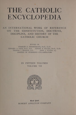 Credit: The Catholic encyclopedia : an international work of reference on the constitution, doctrine, discipline and history of the Catholic Church / edited by Charles G. Herbermann ... Edward A. Pace ... Condé B. Pallen ... Thomas J. Shahan, John J. Wynne; assisted by numerous collaborators. Source: Wellcome Collection.