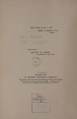 Credit: The Catholic encyclopedia : an international work of reference on the constitution, doctrine, discipline and history of the Catholic Church / edited by Charles G. Herbermann ... Edward A. Pace ... Condé B. Pallen ... Thomas J. Shahan, John J. Wynne; assisted by numerous collaborators. Source: Wellcome Collection.