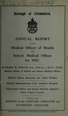 Credit: [Report 1923] / Medical Officer of Health, Chelmsford Borough. Source: Wellcome Collection.