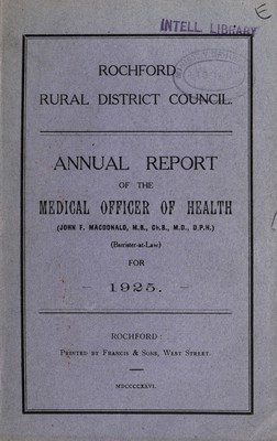 Credit: [Report 1925] / Medical Officer of Health, Rochford R.D.C. Source: Wellcome Collection.