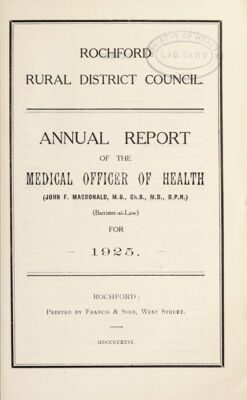 [Report 1925] / Medical Officer of Health, Rochford R.D.C.