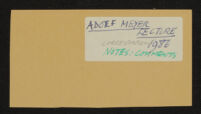 `Adolf Meyer Lecture: correspondence, notes, comments'