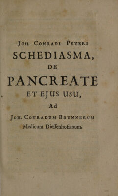 Credit: Experimenta nova circa pancreas. Atque diatribe de lympha & genuino pancreatis usu. Varii tractatus ejusdem auctoris huic novae editioni accesserunt / [Johann Conrad von Brunner]. Source: Wellcome Collection.