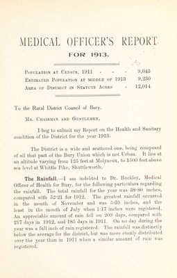 [Report 1913] / Medical Officer of Health, Bury (Union) R.D.C.