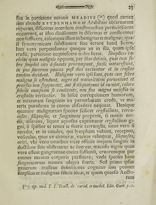 Credit: Dissertatio inauguralis medica sistens circa variolarum distributionem in primis ratione febrium cum iis conjunctarum quaedam analecta ... / [Isaak Daniel Fellinger]. Source: Wellcome Collection.