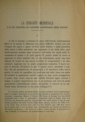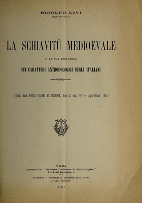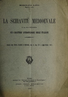 La schiavitù medioevale : e la sua influenza sui caratteri antropologici degli italiani / Ridolfo Livi.