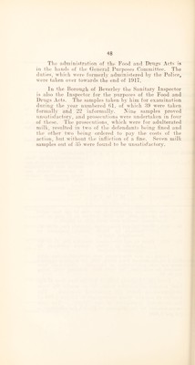 ![i Article Analysed. No. found Adulter- ated, &c. No. of Prosecu tions. Amount of Penalties including Costs. Remarks. 1 11 1 ]ferought forward ... £ s. d. 45 15 52 7 6 milk Curd (formal)... 1 — — Proceedings considered in- advisable. Milk Curd (informal) 2 — — No proceedings. Being in- formal samples, proceedings were inpracticable. d Potted Meat 1 — — Small adulteration rendered proceedings inadvisable. (Scotch Whisky 4 3 4 0 0 1 conviction. 2 proceedings pending. There were circumstances in con- nection with the purchase of the other which ren- dered proceedings inadvis- able. Cautioned. Totals 53 18 56 7 6 X,P>.—The two cases adjourned at the close of the year ended .Slst March, 1025, for third portions to be sent to the Government Analyst were dealt with as follows : — 70c Milk. Fined £10 and Government Analyst’s Fee, £1 Is. Od. Analysis by Public Analyst confirmed by Government Analyst. 71c.. Milk. Fined £5 and Government Analyst’s Fee, £1 Is. Od. Analysis by Public Analyst confirmed by Government Analyst. During the year four iiersons were proceeded against under Part 3 of the Sale of Food Order, 1021, for exjxising imported meat for sale not labelled as inpiorted. Convictions were obtained in each case, the total fines, including costs, being £11 2s. Od. From tlie foregoing table it will be seen that of the total number of samples taken, 5-3 or nearly 8% w^ere adulterated or below the prescribed standard. The number of samples taken corresponds to 3.9 per 1,000 of the estimated population of the County. The rate recommended by the Ministry of Health for efficiency is 2.0 per 1,000,](https://iiif.wellcomecollection.org/image/b29185348_0051.jp2/full/800%2C/0/default.jpg)