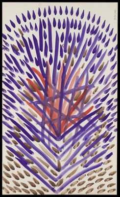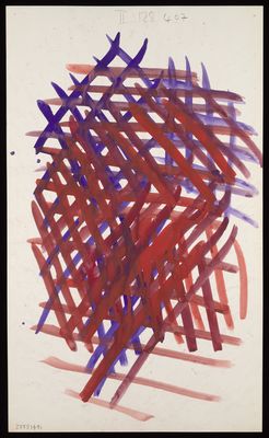 Credit: Red and purple diagonal lines with purple and brown darts and droplets, and a red and purple mesh. Source: Wellcome Collection.