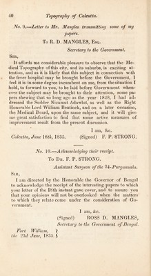 Credit: Extracts from the topography and vital statistics of Calcutta : embracing observations on these subjects formed at different periods, and officially submitted to the local authorities / by F.P. Strong. Source: Wellcome Collection.