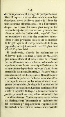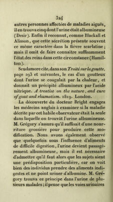 De l'albuminurie ou hydropisie causée par maladie des reins : modifications de l'urine dans cet état morbide, à l'époque critique des maladies aigues, et durant le cours de quelques affections bilieuses / par Martin Solon.