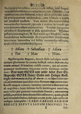 Credit: Disputatio inauguralis medica de morsibus et puncturis animalium ... / [Johann Kaspar Witzel]. Source: Wellcome Collection.