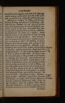 Credit: A discourse of Bathe, and the hot waters there. Also, some enquiries into the nature of the water of St. Vincent's Rock, near Bristol; and that of Castle-Cary. To which is added a century of observations, more fully declaring the nature ... of the baths. With an account of The lives, and character, of the physicians of Bathe / [Thomas Guidott]. Source: Wellcome Collection.