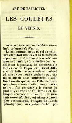 Credit: Art de fabriquer les couleurs et vernis, de préparer les huiles, les colles, etc., pour tous les genres de peintures / [Edmond Pelouze]. Source: Wellcome Collection.