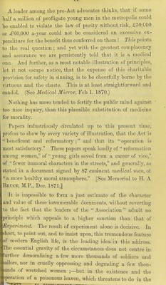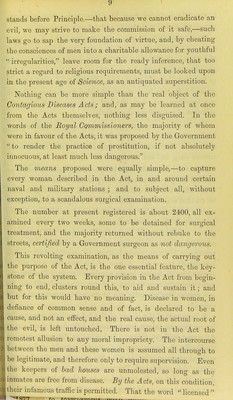 ![Members, is now reprinted by tiie Scottisli Nationai Association for tfie Repeal of the Contagious Diseases Acts.—fSee page 16.J THE INFLUENCE OF LEGISLATION OK PXIBI^IC MORALS. rjIHE last vote of the House of Commons [21st May 1873] on the proposition to repeal two Acts of Parliament, has a bearing on the present and future welfare of this kingdom, which the majority of men, owing to causes too little sus- pected, are still far from being in a position to estimate. It may be thought, as it is declared by many, that enough has been said, and more than enough, on every aspect of the subject to which those Acts relate. Good and intelligent men thmk they have nothing of importance to learn. Surely It is said, there are two sides to the question; and it is not safe to pronounce hastily against a law which has for' its object the mitigation of human sufferino- But beyond the two sides which arise out of the provisions and details of the Acts, there is an aspect, of deeper moment and of wider scope, involving an element in the controversy which has been too much overlooked; but the importance of which, whether it bears on this or any other social question It IS not easy to overstate. A review of the legislation to whieh the present agitation is < ue, reveals the fact that men are self-divided into two well-](https://iiif.wellcomecollection.org/image/b21450250_0003.jp2/full/800%2C/0/default.jpg)