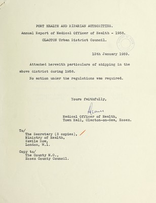 Credit: [Report 1958] / Port Medical Officer of Health, Clacton U.D.C. Port Health and Riparian Authorities. Source: Wellcome Collection.