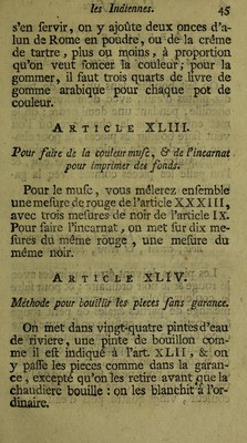 L'art de faire les Indiennes, et de composer les plus belles couleurs, bon teint à cet usage, etc / [Delormois].