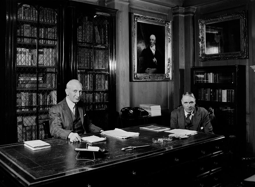Credit: M0013824: Edgar Ashworth Underwood and Armand Donald Lacaille in the Director's Room at the Wellcome Historical Medical Museum. Source: Wellcome Collection.