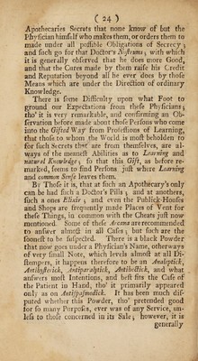 Credit: An enquiry into the growth of modern empiricism: : Considering, how far some persons secretly enlightened, have the advantage of those who rely meerly on the helps of humane learning in the cure of diseases. With a detection of some fraudulent practices in physick. Part the first. Humbly offered to the consideration of all physicians, surgeons, and apothecaries. Source: Wellcome Collection.