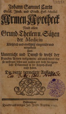 Armen-Apotheck nach allen Grund-Theilen u. -Saetzen der Medicin ... / [Johann Samuel Carl].