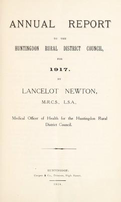 Credit: [Report 1917] / Medical Officer of Health, Huntingdon R.D.C. Source: Wellcome Collection.