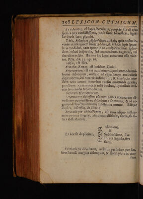 ![2o90-- roSLEXICON C HT MiCU M. $i selenites, eft lapis fpecularis, proprie illa eft ejus | t fpeci:s qux candidiffima, unde fiunt foeneftra , lignis B i; Ixvieatis loco plumbi. Mur | || Diofc. Seleuitem vApbrofelium dici ait, quia noctu in- f ; veniatur imaginem lunz reddere, & id facit lapis fpecu- | laris candidus, nam aperte in eo confpicitur luna. fplen- ff dens, veluti in fpeculo, fed an cum luna augeatur; vel Jj ij decrefcat nefcio. Humor hic lapis concretus effe vide- ! tnt. Plin. lib. 37.cap. 10. ; | Selfas, cft filix. Semafor, Femar, eftlucidum Carici. Seperatorim, eft vas tranfmittens quodammodo uni- ] forme oblongum , orificio ad capacitatem auricularis || digiti aperto, cui matcria infunditur, & fundo, ín mo- | qur acis acuato materiam rurfus emittendi gratia | przdirum, cum annexis anfis duobus, liquoribus invi- | cem feparandis àccomodatum. | S'chavatio R'ementorum. | | ' eharatio her abíceffim. eft cum partes natürarüm di-. ver(arum commiftiene ab(cedunta (e mutuo, & ad re- | giones diftinctas feruntur abfiftentes mutuo. Eítque | duplex, difceffus, & dilutio : | Separatio per ab[iratfioucm , eft cum aliquo inftru- | mento partes diver(., afe mutuo diíclu(ze, altera;ab al- ! tera abftrahuntür., | Ablutione, Er vide Et hoc fit dupliciter, 4 SubduG&ione, five ^C fintres liquidz,five ficcx. S'evaratio ter dilutiomem, adlatus perficitur per line |. trem hiümili margine oblongum, & altera parte in. acu | . tunt](https://iiif.wellcomecollection.org/image/b30343033_0222.jp2/full/800%2C/0/default.jpg)