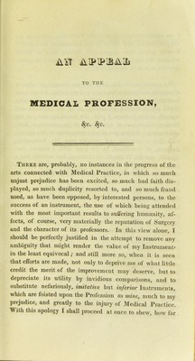 An appeal to the medical profession, on the utility of the improved patent syringe, with directions for its several uses, shewing, by a statement of facts, the validity of the rights and claims of the patentee.