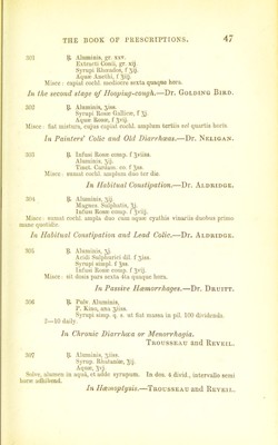 Credit: The book of prescriptions : containing 3000 prescriptions, collected from the practice of the most eminent physicians and surgeons, English and foriegn, comprising also, a compendious history of the materia medica, lists of the doses of all officinal or established preparations, and an index of diseases and remedies / by Henry Beasley. Source: Wellcome Collection.