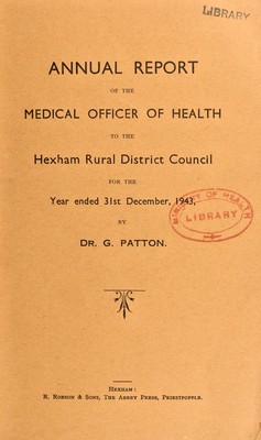 Credit: [Report 1943] / Medical Officer of Health, Hexham R.D.C. Source: Wellcome Collection.