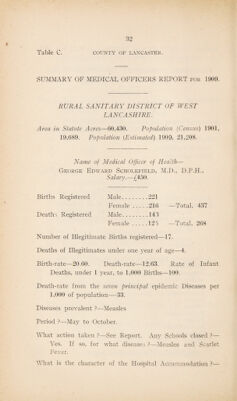Credit: [Report 1909] / Medical Officer of Health, West Lancashire R.D.C. Source: Wellcome Collection.