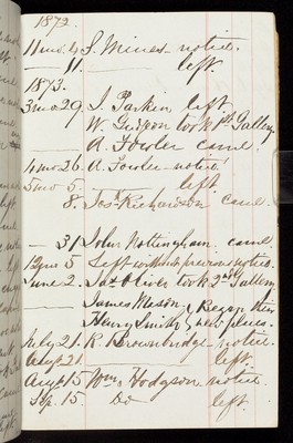 Credit: Notebook marked 'attendants 1860', containing notes of staff commencing and leaving. Source: Wellcome Collection.