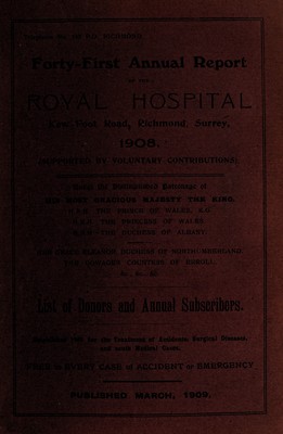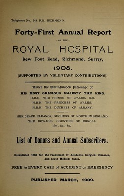 Annual report of Royal Hospital Hospital, Kew Foot Road, Richmond, Surrey : 1908.