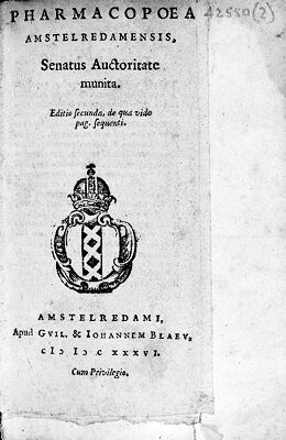 Credit: M0016147: <i>Pharmacopoea Amstelredamensis</i>, 1636: title page. Source: Wellcome Collection.