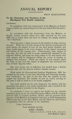 [Report 1957] / Medical Officer of Health, Hartlepool Port Health Authority.