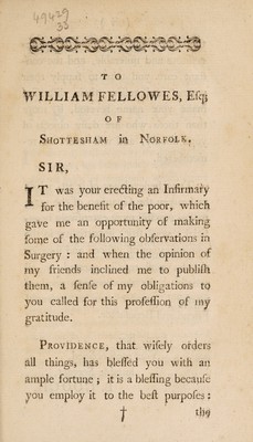 Credit: A practical treatise on wounds and other chirurgical subjects: to which is prefixed a short historical account of the rise and progress of surgery and anatomy. Addressed to young surgeons / by Benjamin Gooch. Source: Wellcome Collection.