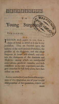 Credit: A practical treatise on wounds and other chirurgical subjects: to which is prefixed a short historical account of the rise and progress of surgery and anatomy. Addressed to young surgeons / by Benjamin Gooch. Source: Wellcome Collection.