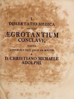 Trias dissertationum medicarum ad diateticam potissimum spectantium, quarum 1. De aegrotantium conclavi. 2. De frictione. 3. De balneis particularibus / Inscribuntur, quaeque in illustri Academia Lipsiensi diversis temporibus conscriptae et habitae sunt ... Nunc autem in unum fasciculum collectae.