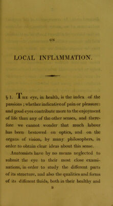 A treatise on local inflammation, more particularly applied to diseases of the eye, wherein an improvement in the treatment of those diseases is recommended.