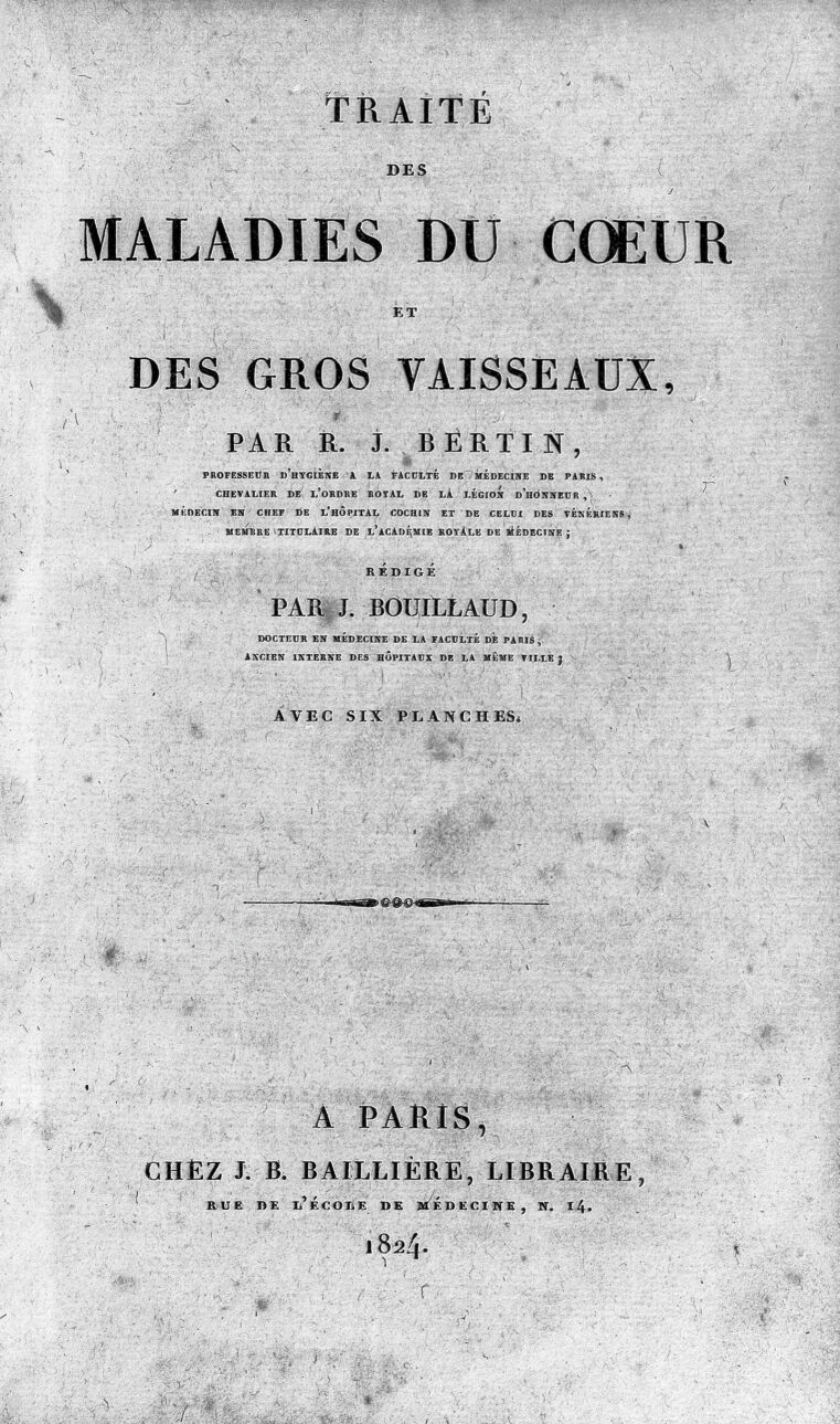 M0015453: Bertin: <i>Traite des Maladies du Coeur et des Gros Vaisseaux</i>, 1824: title page. Public Domain Mark. Source: Wellcome Collection.
